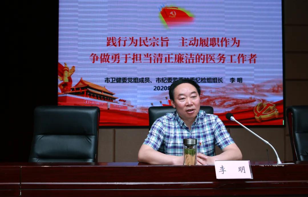5月14日,市卫健委党组成员、市纪委监委驻委纪检组组长李明来到我院,为党员干部上了一堂廉政党课。