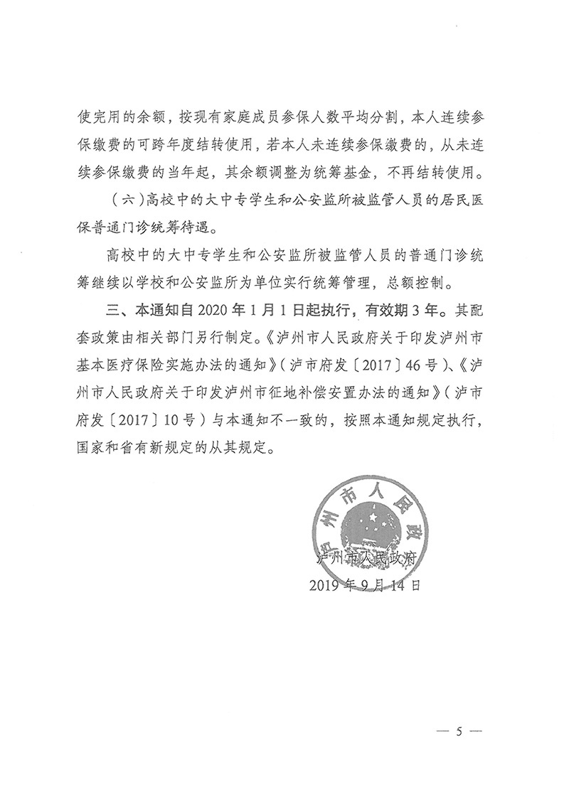 关于转发《泸州市人民政府关于调整我市城乡居民基本医疗保险有关政策的通知》的通知